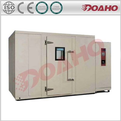电子行业步入式试验箱主要提供产业界大型零件 、半成品 、成品、温湿度环境测试。DOAHO步入式主要由控制面板、配电盘 、保温库板、送风机 、加热器 、加湿器 、冷冻机组合而成,主要规格可区分为6种标准室内尺寸及24种不同条件测试规范。